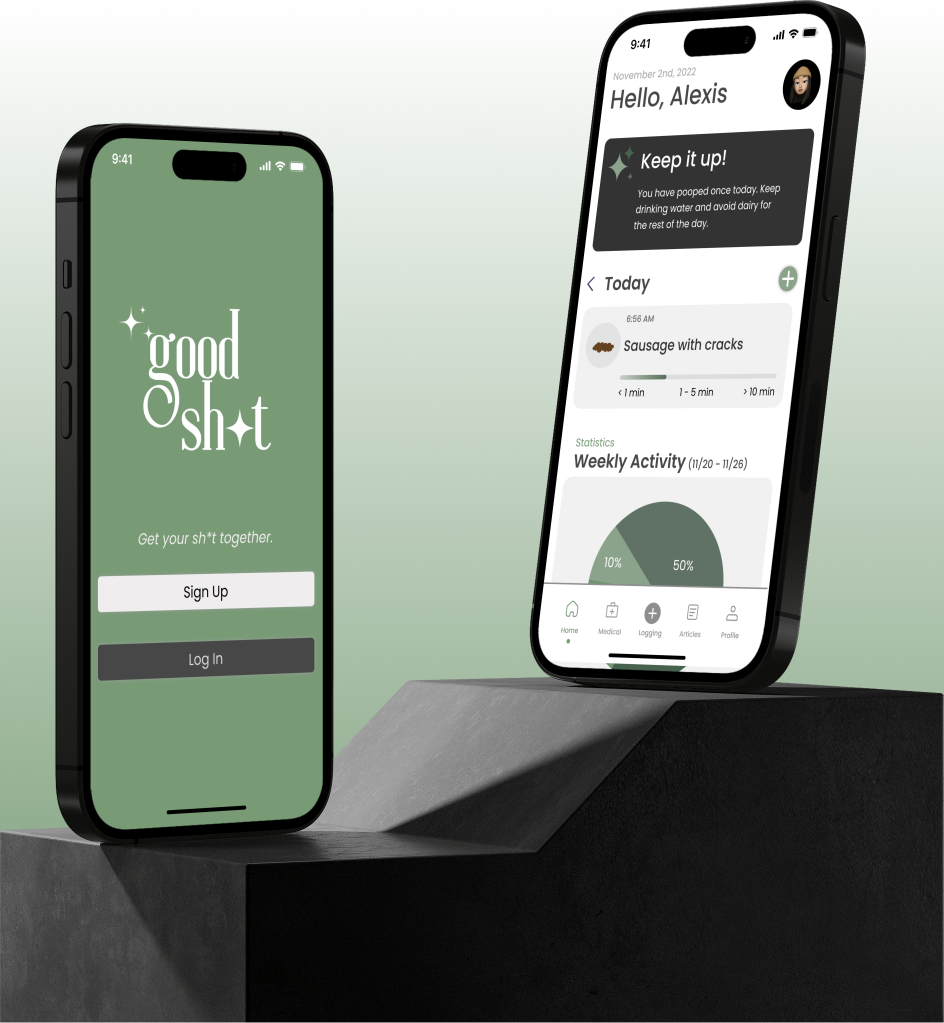 The project that we worked on over the course of 8 weeks is a lifestyle app called Good Sh*t. With this app, users can log their bowel movements and access reliable information around the topic of gut health.Most lifestyle apps focus solely on goal-setting and the bettering of oneself. However, when it comes to gut health, what we found is that a lot of people are more keen on the idea of learning more, not necessarily self-improvement. This is what our app prototype addresses; it provides users with a way to observe patterns in their bowel movements and learn valuable information about their gut health without having to commit to goals.Because this was a class project and we would only have an 8-week time frame to complete it, we had to adjust the Lean UX method accordingly. While Lean UX is iterative and takes place over the course of many months, we had to shorten the process and were only able to complete 2 sprints and a week of refinement.
